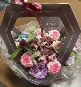 お誕生日に、 お花の数は5個、 そして素敵な小物や衣服もいただきました。