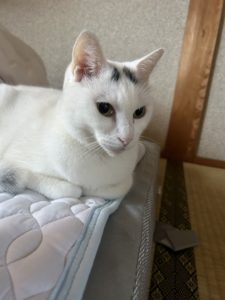 写真は、芋と、猫長男5歳の雪・ゆきくんと、猫次男 八・はちくん(4歳の猫)