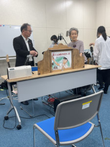 当然、そこで福笑い体操をしました。明るい空気を入れたことになり、それはそれで喜ばれました。(relief)
